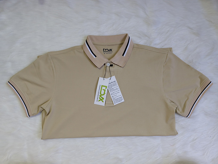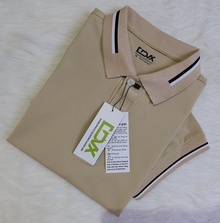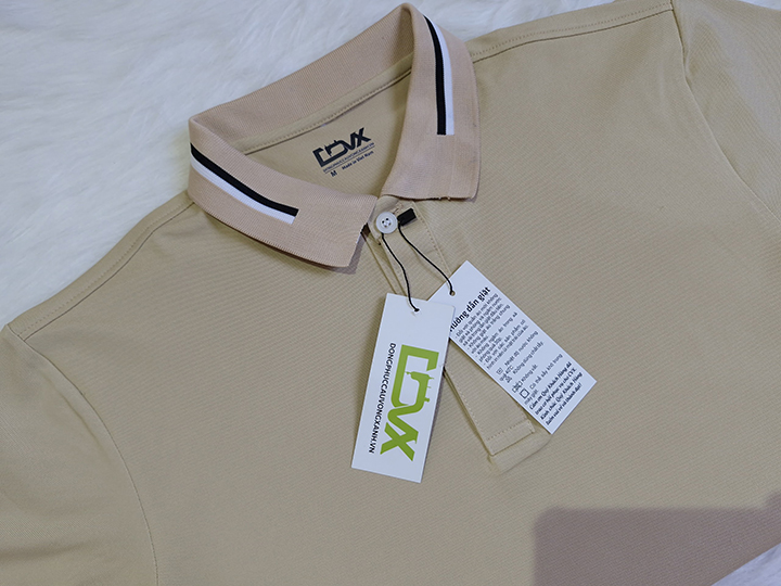Áo thun có cổ, tay ngắn dạng trơn, bo cổ loại cao cấp, vải mát, không nhăn, không xù lông, có thể in theo yêu cầu.