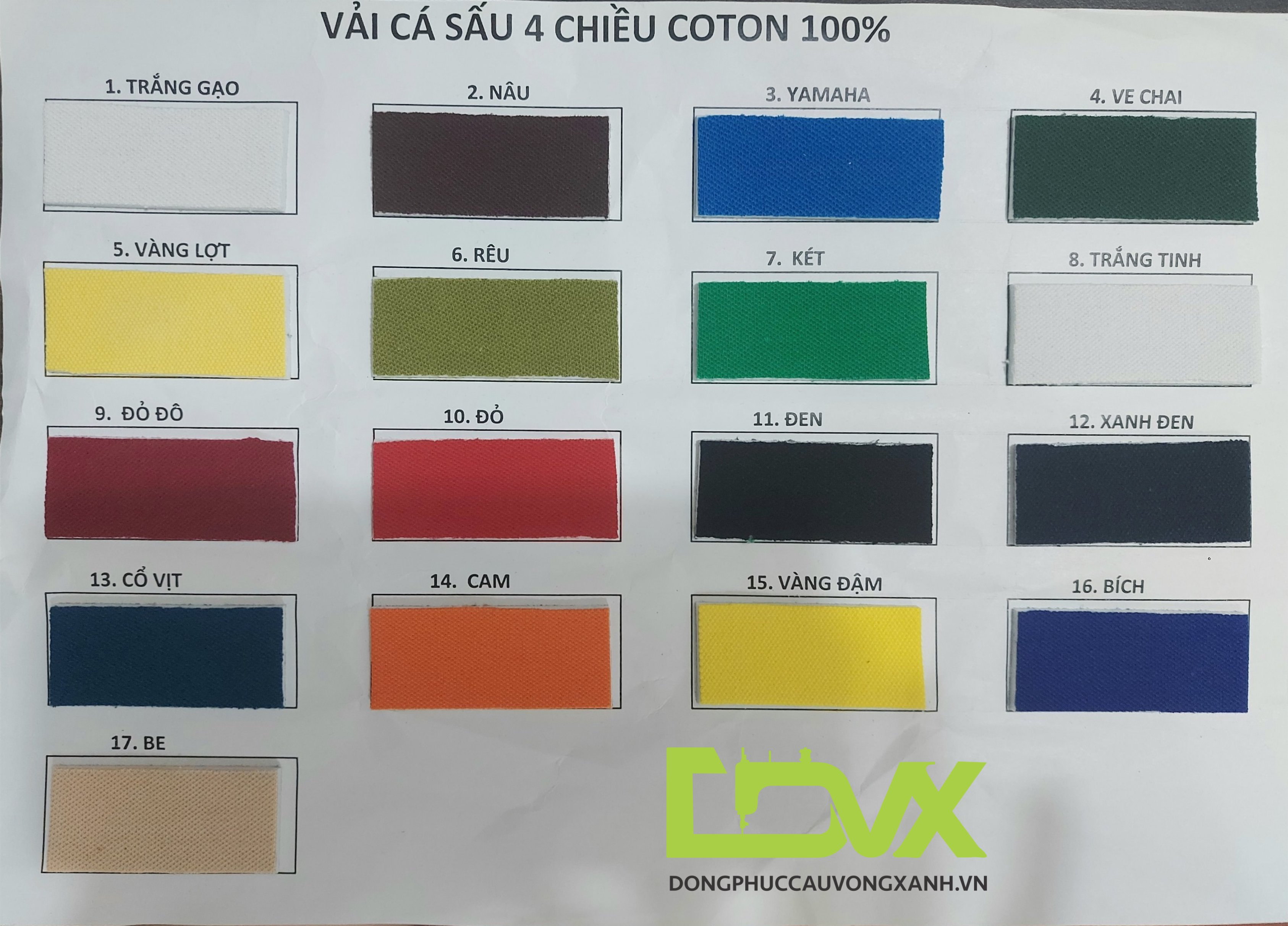 - Vải cá sấu 100% cotton 4 chiều: Vải mặc mát, hút mồ hôi tốt, lên phom áo đẹp. Do thành phần sợi cotton cao nên giá thành cao. Phù hợp văn phòng và quà tặng cao cấp.